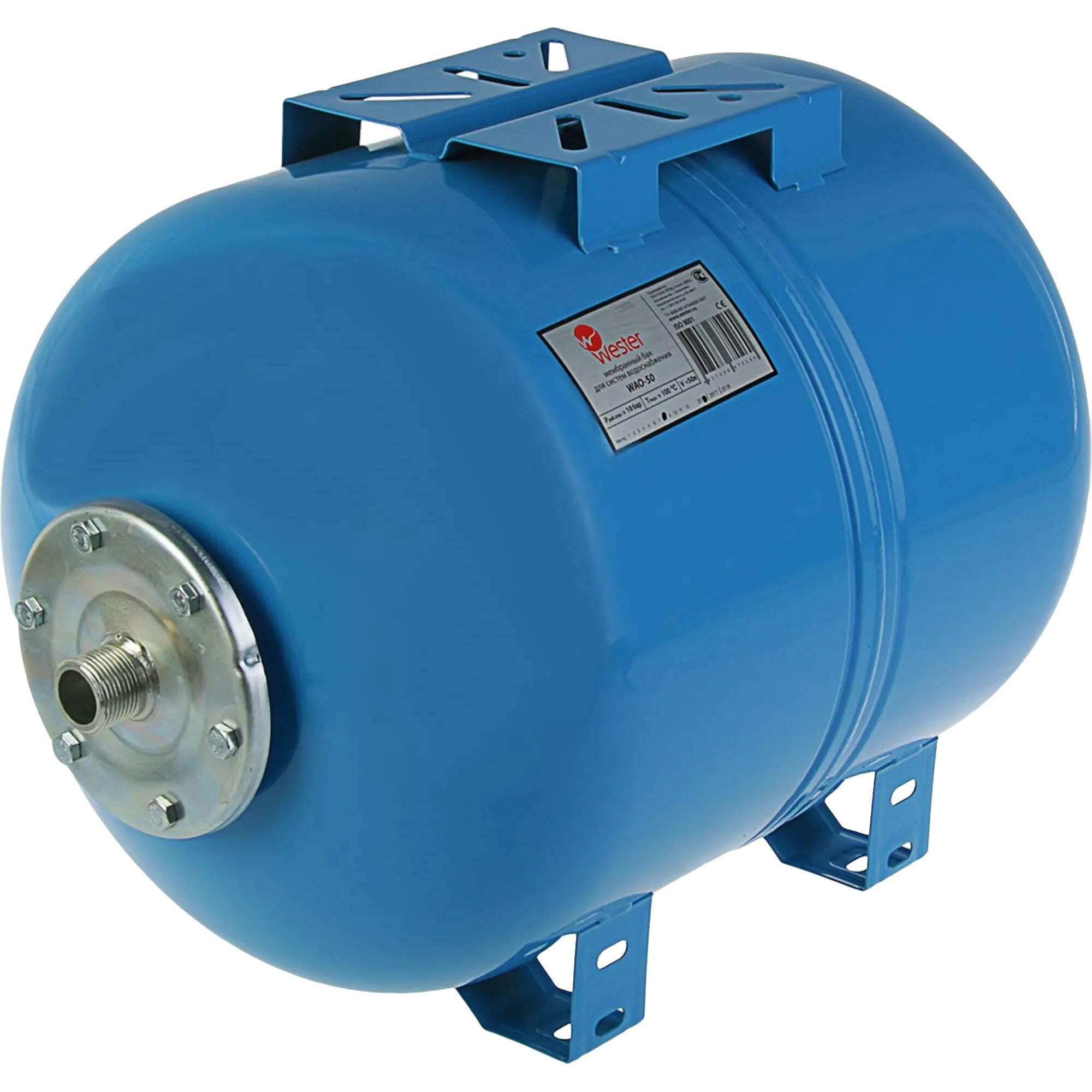 Гидроаккумулятор 50 литров WAO50 Wester 10 бар Россия, горизонтальный с площадкой для насоса, синий для водоснабжения 0-14-0970