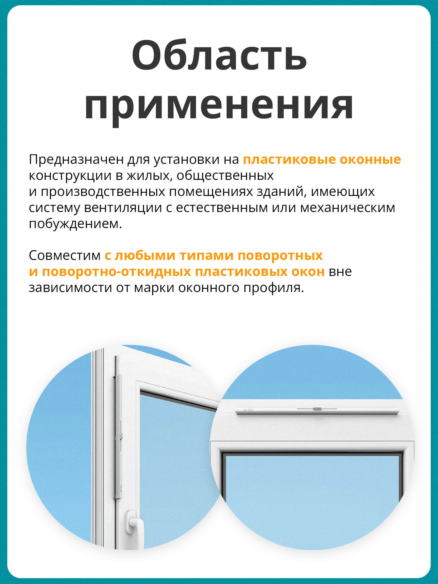 | Дополнительная информация | подходит к любым типам поворотных и поворотно-откидных пластиковых окон вне зависимости от марки оконного профиля |