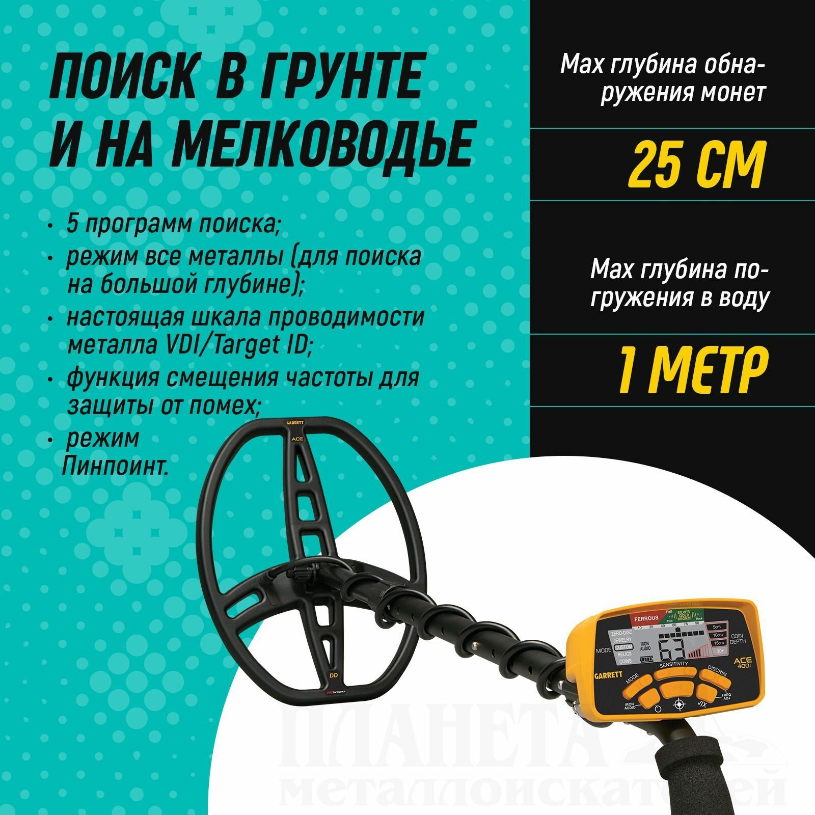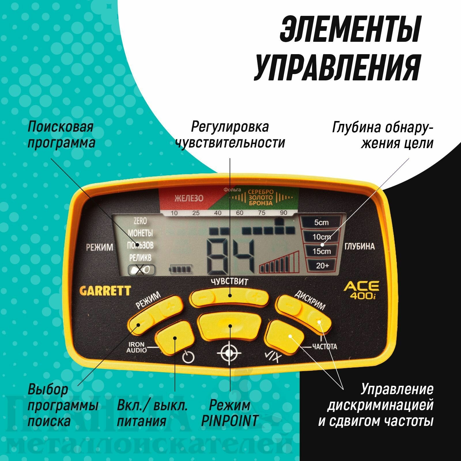 Металлоискатель Garrett ACE 400i RUS (катушка 8.5" x 11" DD PROformance™) интересное:
