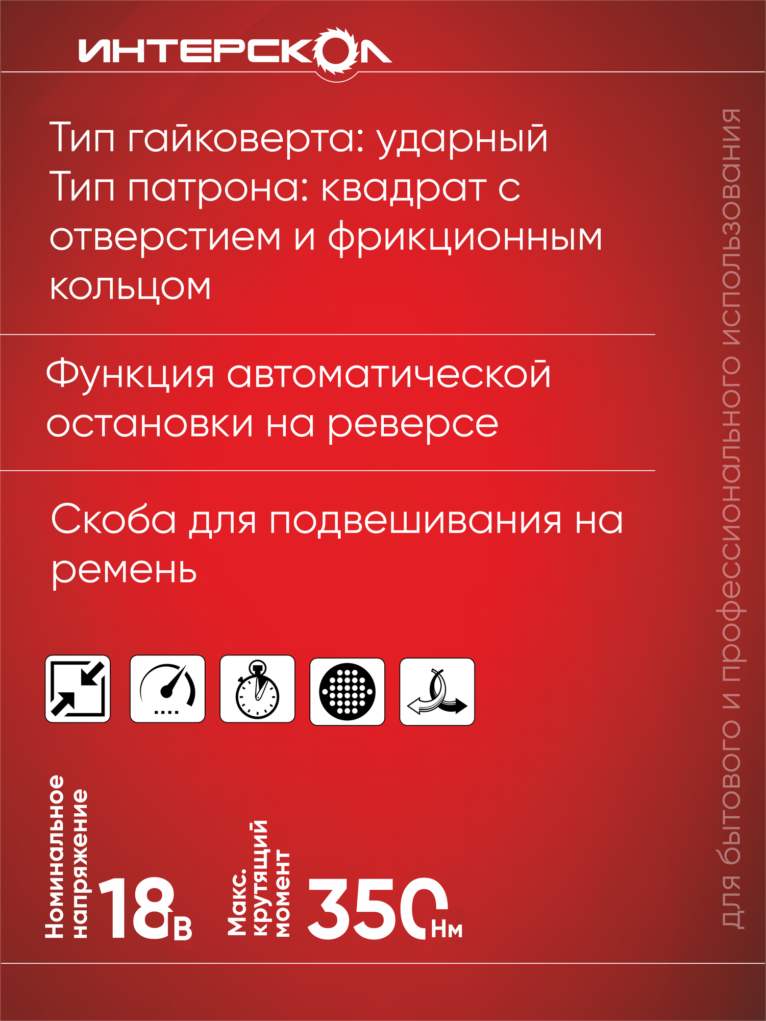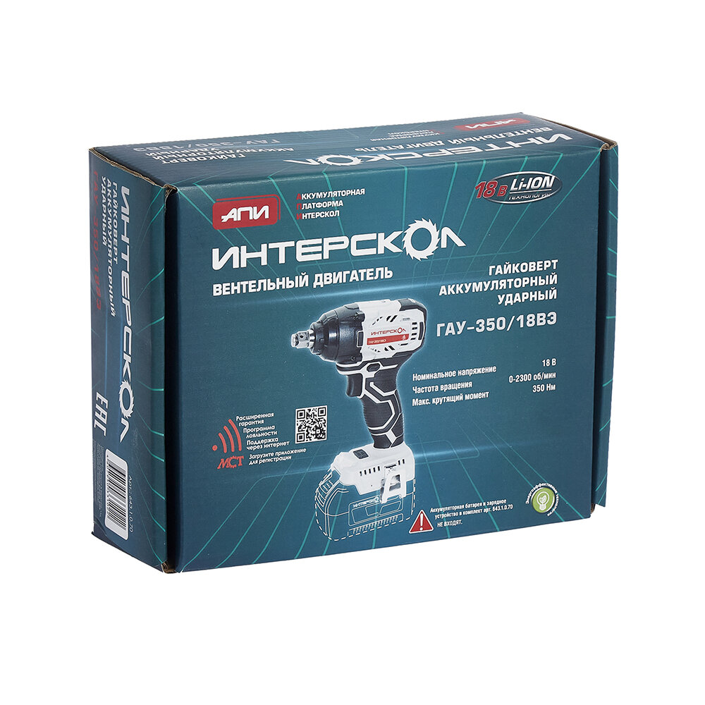 Гайковерт аккумуляторный ударный ИНТЕРСКОЛ ГАУ-350/18ВЭ бесщеточный Li-ion АПИ (картон, без аккум. и ЗУ)