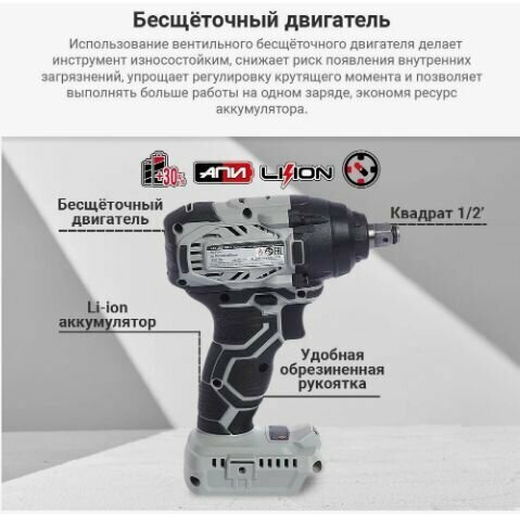 Бесщеточный гайковерт ИНТЕРСКОЛ ГАУ-350/18ВЭ (без акб и зу)