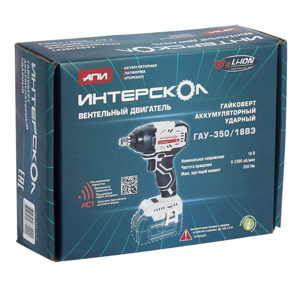 Ударный гайковерт ИНТЕРСКОЛ ГАУ-350/18ВЭ 643.1.0.70,от аккумулятора, АПИ, 350 Нм, без АКБ и ЗУ