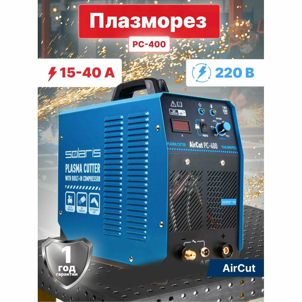 Плазморез Solaris AirCut PC-400 (220 В; 15-40 А; Высоковольтный поджиг; встроен. компрессор; термозащита; плавный запуск)