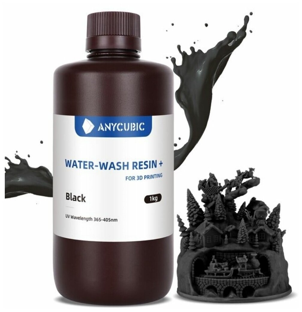 Фотополимерная смола Anycubic Water-Wash Resin+ Чёрный, 1 л