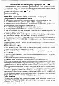 | Отзыв: | Аэрограф при первом же использование не стал разбрызгивать, еле как спустя 3 мин попытки поработать через кнопку подачи воздуха начал травиь воздух и аэрограф вообще перестал брать краску или воду из банки |