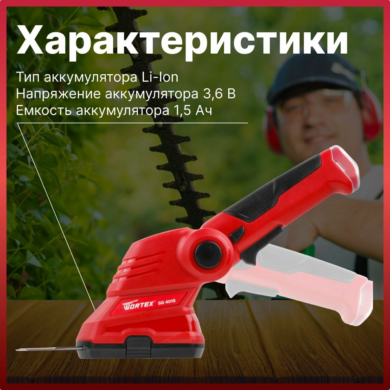 Садовые ножницы-кусторез аккумуляторный WORTEX SG 4015 (0311123) для кустов, травы и живой изгороди