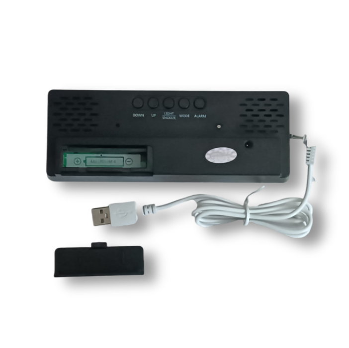 Часы настольные электронные с проекцией: будильник, термометр, календарь, 19.6 х 6.5 см