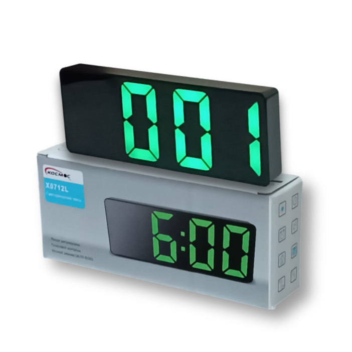 Часы настольные (Черный корпус, зелёные цифры) Космос X0712L