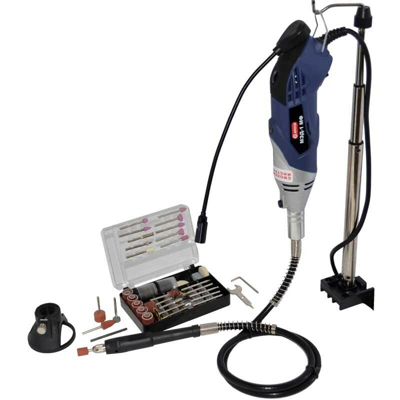 Гравер электрический диолд МЭД-1 МФ / Мини-дрель / Станок с гибким валом на штативе, регулировка оборотов, 170 Вт, 0-35000 об/мин, 82 насадки в кейсе