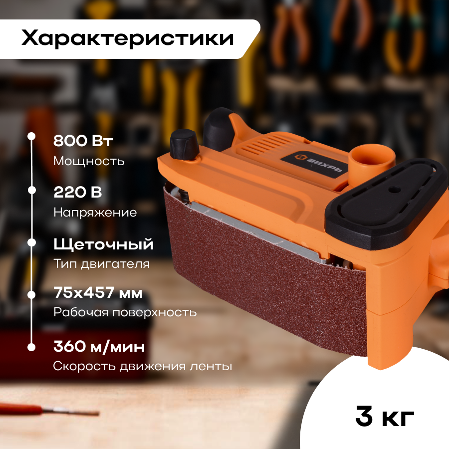 СохранитьВихрь ЛШМ-75/800 Машина лентошлифовальная 800Вт 833x75мм 360м/мин. вихрь интересное: