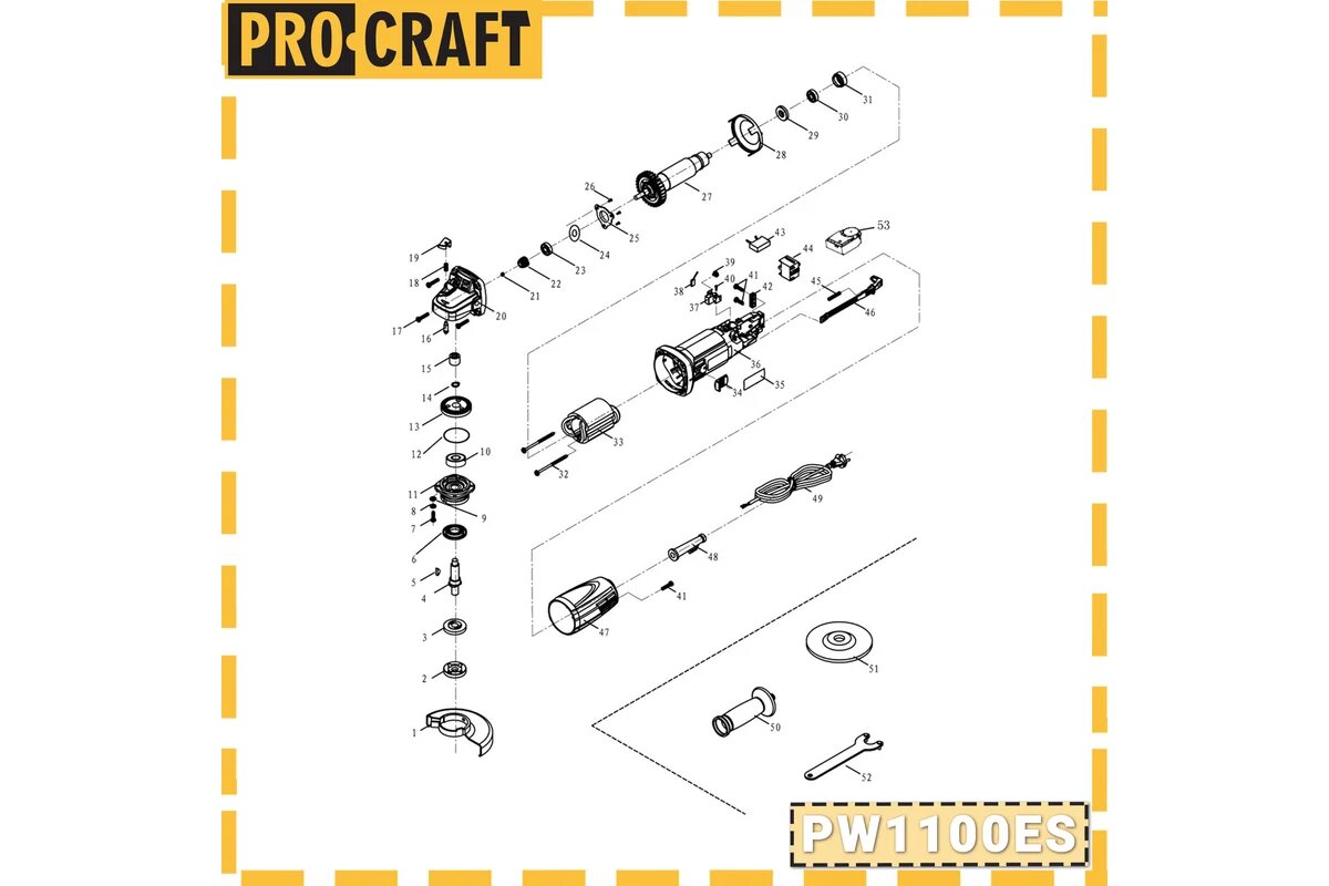 Шлифмашина ProCraft PW1000, защита от перегрузок и перегрева, 1000Вт, 220В, 125мм