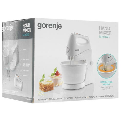 Миксер стационарный Gorenje M450WS, 400 Вт, ручной режим, 5 скоростей, 2 литра, белый
