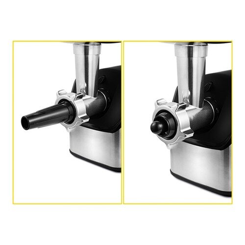 | Отзыв: | При первом включении появился запах, на второй раз его уже не было. Мясо прокручивается без помощи толкателя, только успевай засовывать новый кусок, особенно если мясо без жил. В комплекте 3 насадки для фарша разного размера. Использовал только среднюю из них, так получается оптимальный фарш. На корпусе всего 3 кнопки, старт, медленный режим и реверс. Порадовал шнек сделанный из металла. Моется довольно просто. |