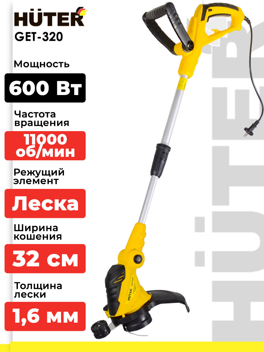 Электрический триммер / электротриммер GET-320 Huter (600 Вт, 11000 об/мин, скашивание леской - 320 мм) интересное: