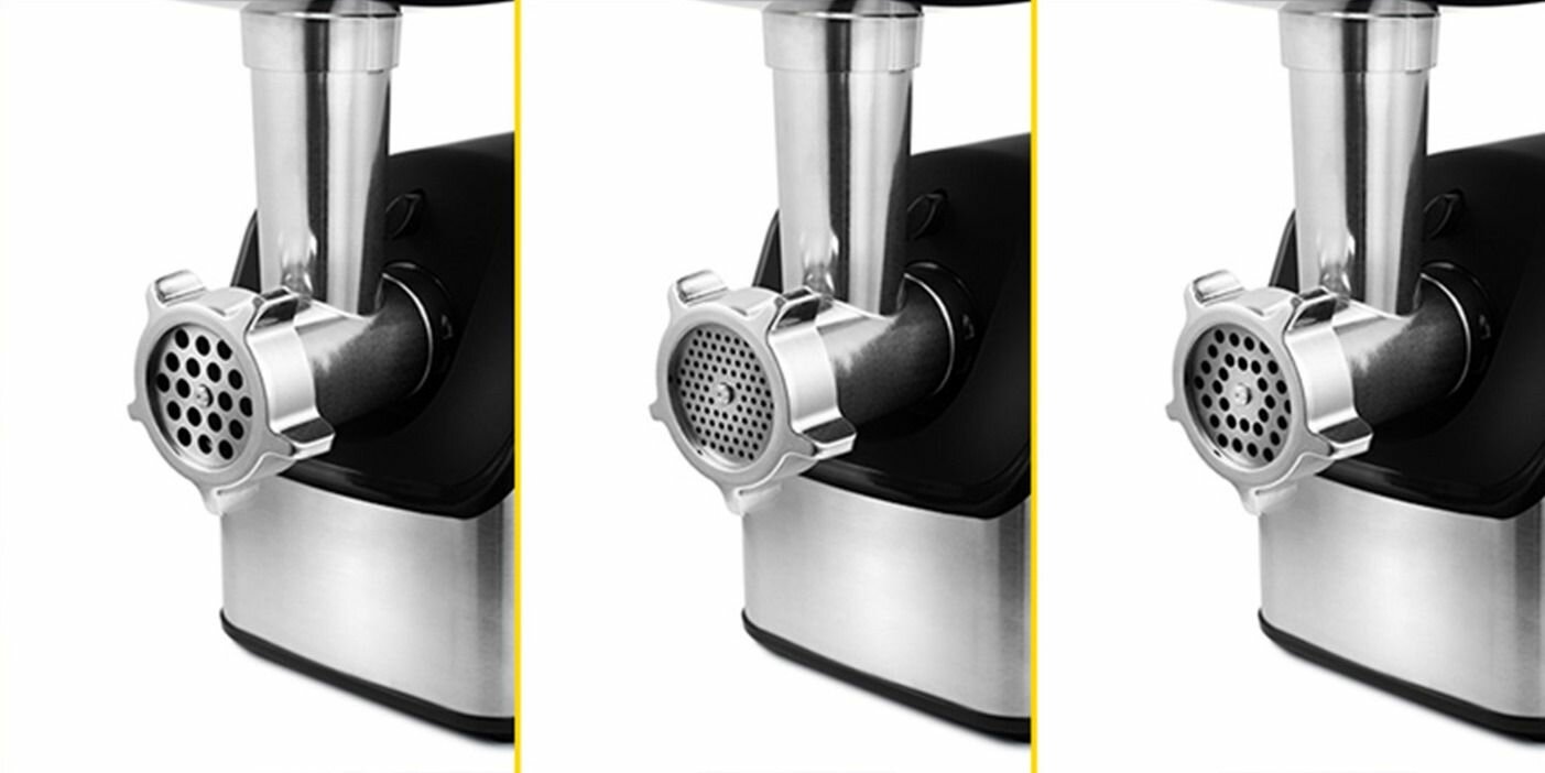 Внешне мясорубка выглядит солидно и современно, в тоже время конструкция не очень сложная, очень быстро и легко собрал. Поверхности ровные, легко мыть Ранее у меня не было электрических мясорубок, особо не с чем сравнивать, но производительность kitforta из данной ценовой категории впечатляет - более 2 кг/мин, при этом не особо шумит, я думал будет погромче, опять же извиняюсь, не с чем сравнивать. Нас с супругой все устраивает, нареканий к работе мясорубки нет. По общим сведениям: Мотор 1800вт, две скорости работы, функция реверса. Отличная комплектация включает в себя целых три решетки дл фарша, доп насадки для изготовления колбас и кеббе. |