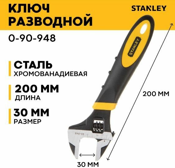 Ключ гаечный разводной Stanley "Maxsteel" 200мм 0-90-948 0-90-948 .