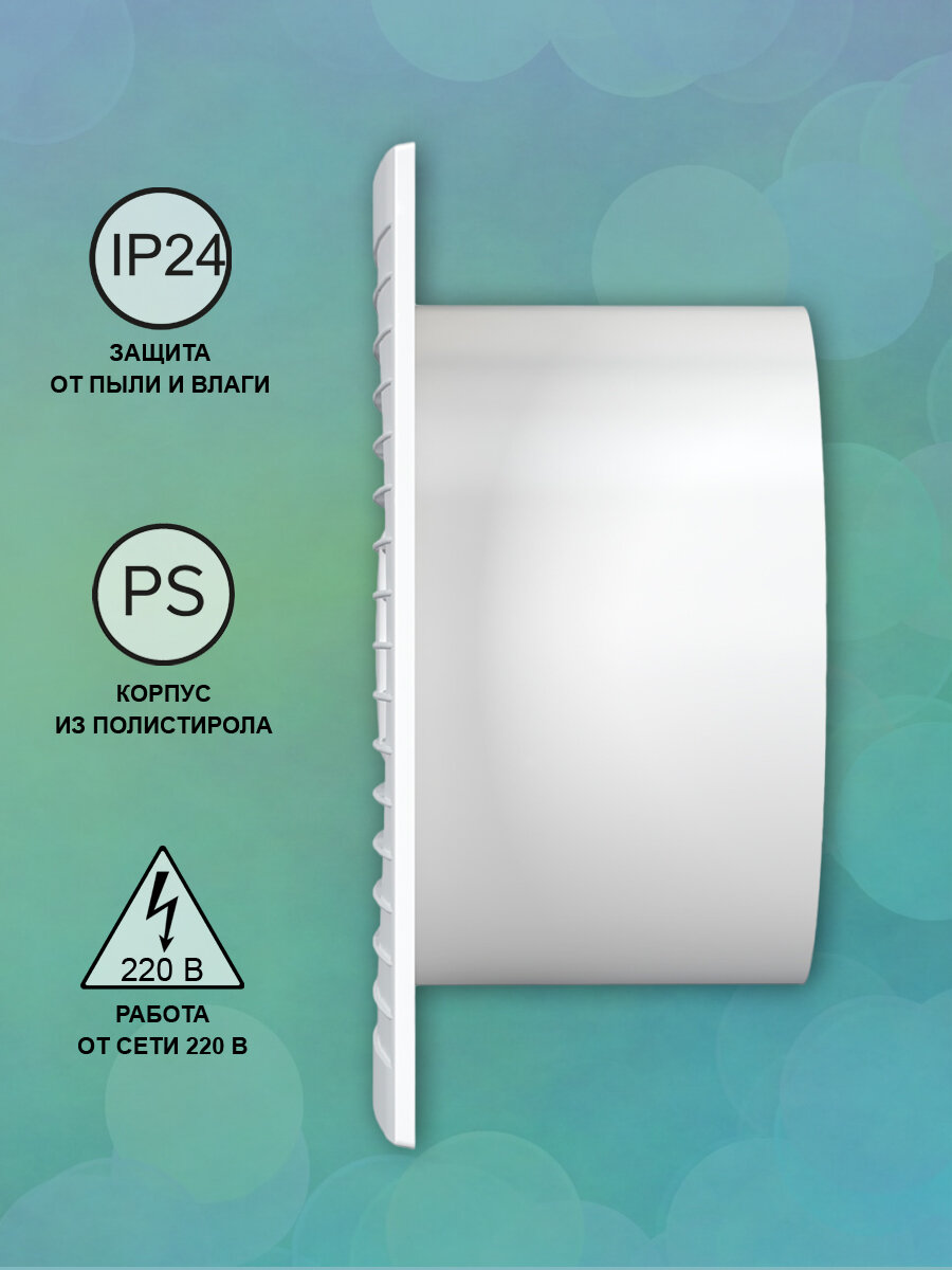 Вентилятор осевой / вытяжка в ванную / вытяжка в туалет d100 мм, белый