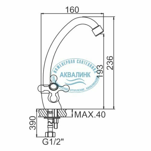 Смеситель для кухни 1/2 кер 4119L Ledeme крест лит нос, силумин