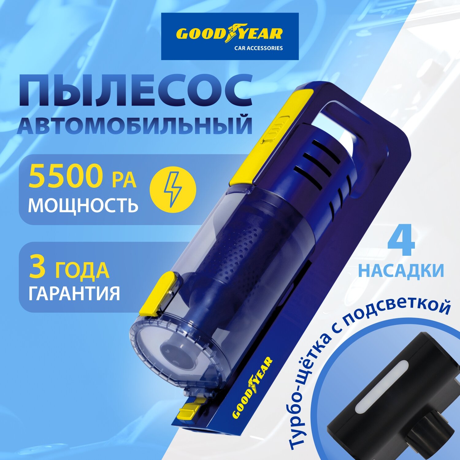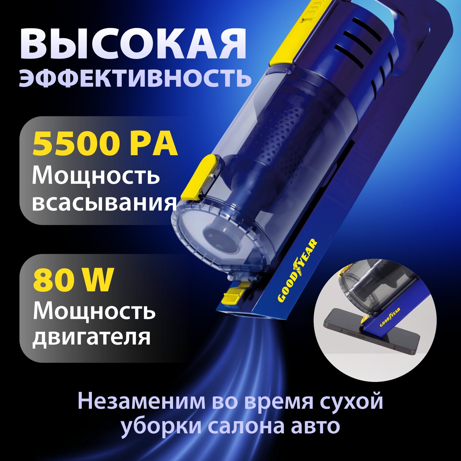 Автомобильный пылесос goodyear gy-vc-02 низкий уровень шума, многоразовый фильтр, от прикуривателя