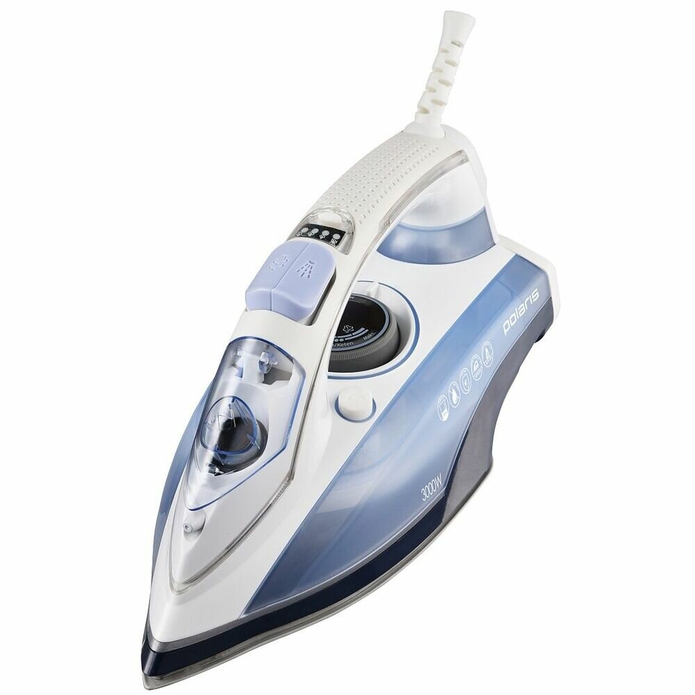 Паровой утюг Polaris PIR 3074 SG AA 3m, встроенный парогенератор, мощность 3000 вт, белый/голубой