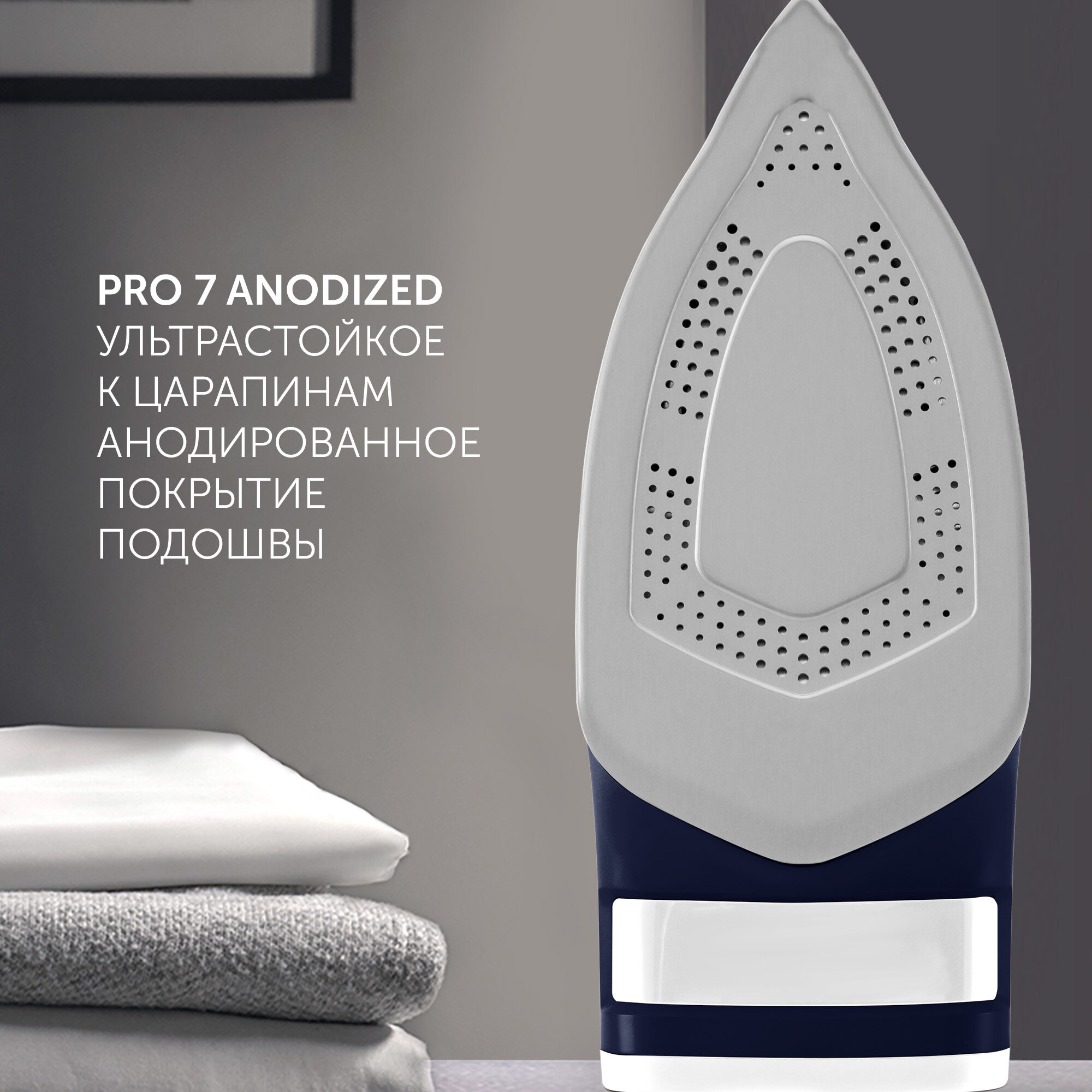 2. Достаточно тяжёлый, не надо давить когда гладишь. 3. Очень сильный пароудар, прям супер? 4. Хорошая подошва, по одежде скользит чуть ли не сам. 5. Длинный провод. 6. Кнопка само очистки |