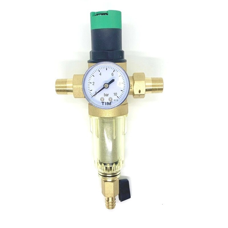 Фильтр самопромывной с редуктором давления и манометром 1/2" TIM JH-1007
