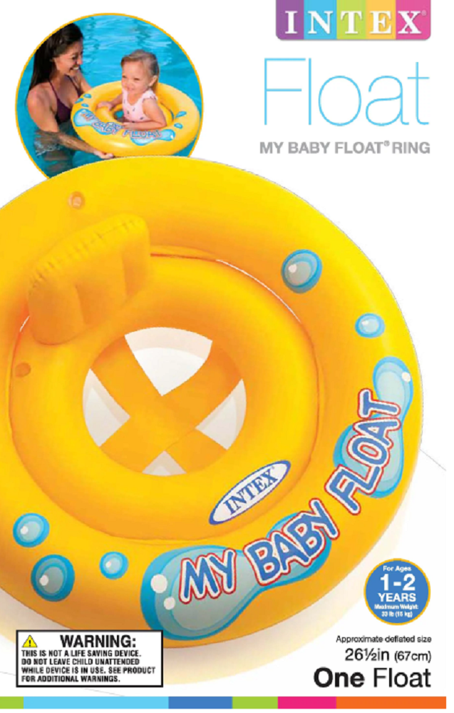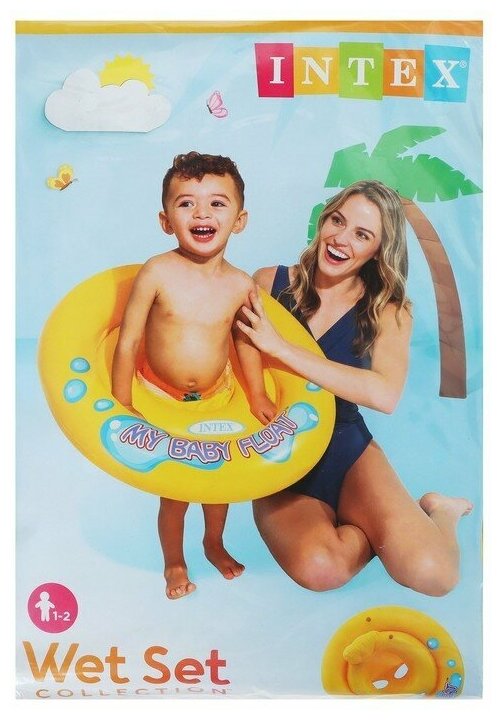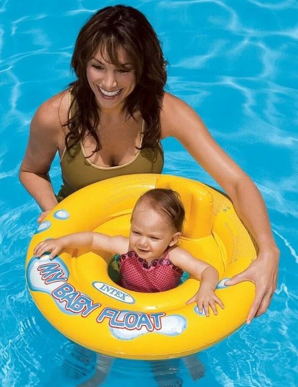 Детский надувной круг для плавания 67 см, с отверстиями для ножек, с сиденьем, My baby float, от 1-2 лет, intex 59574