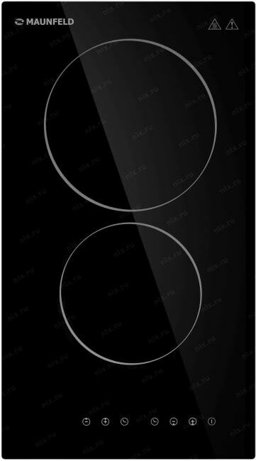 Электрическая варочная панель MAUNFELD CVCE292BK черная стеклокерамика, 1.2 кВт, 2 конфорки, быстрый нагрев, индикация работы