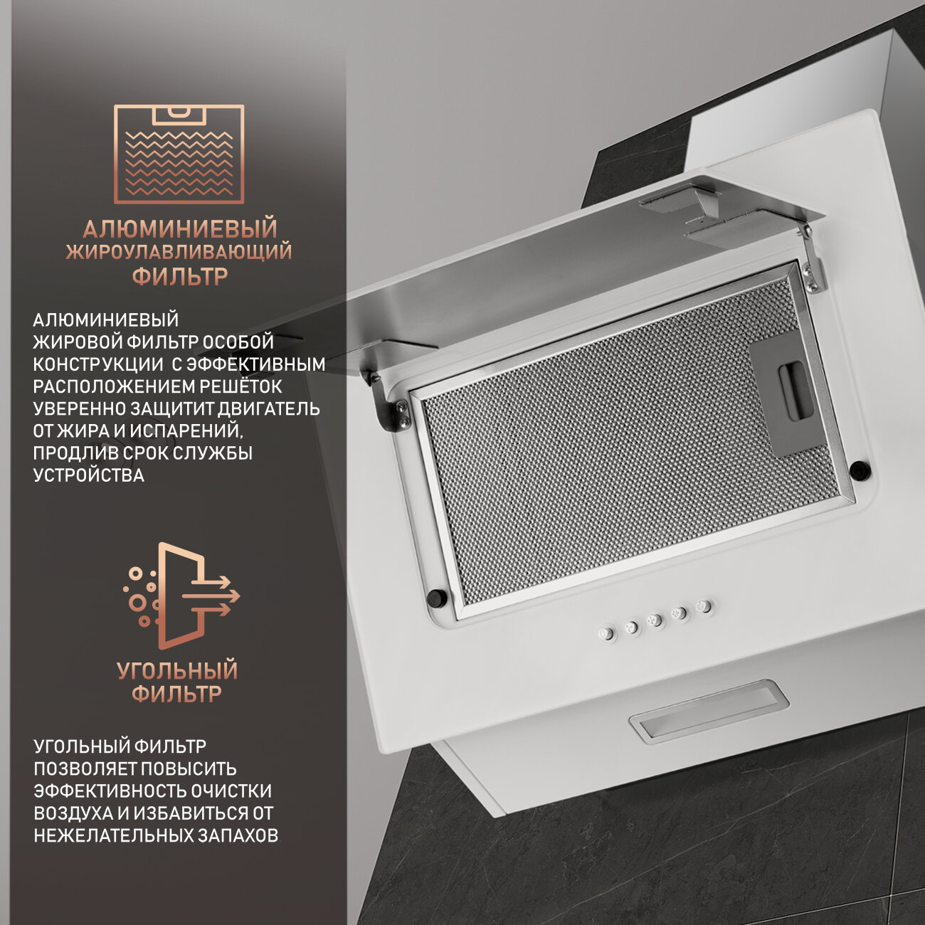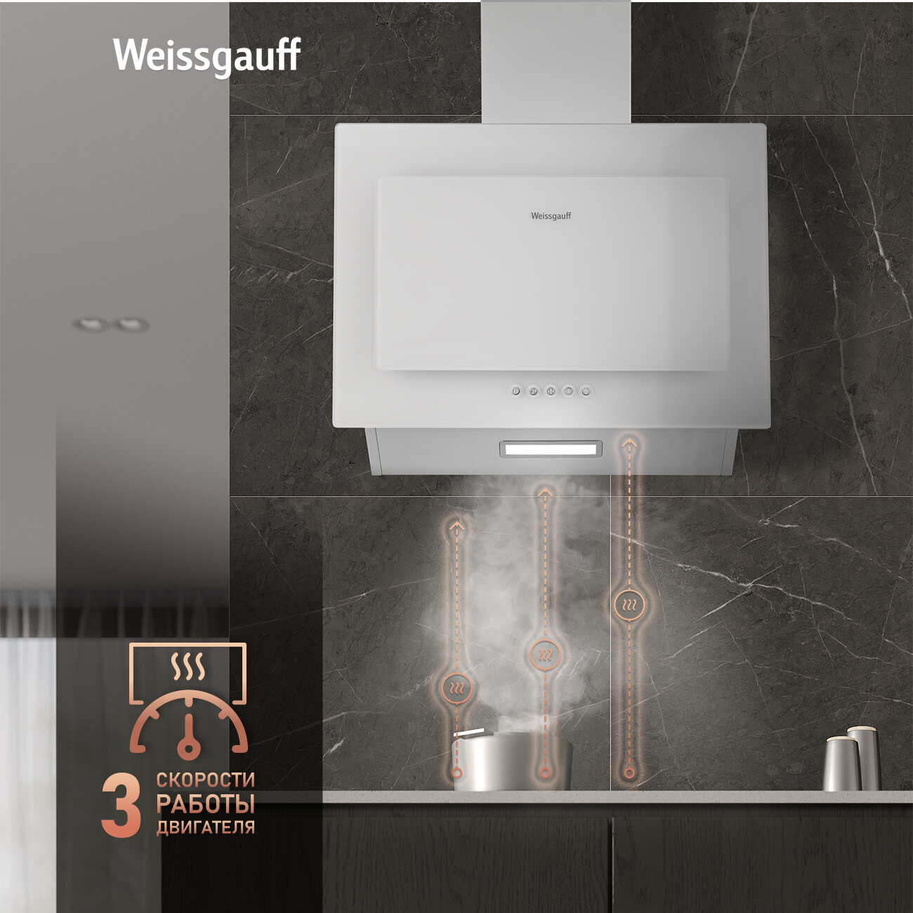Купить Купольная вытяжка Weissgauff Zaurak 60 PB WH 3 года гарантии, Алюминиевый жировой фильтр, Низкий уровень шума