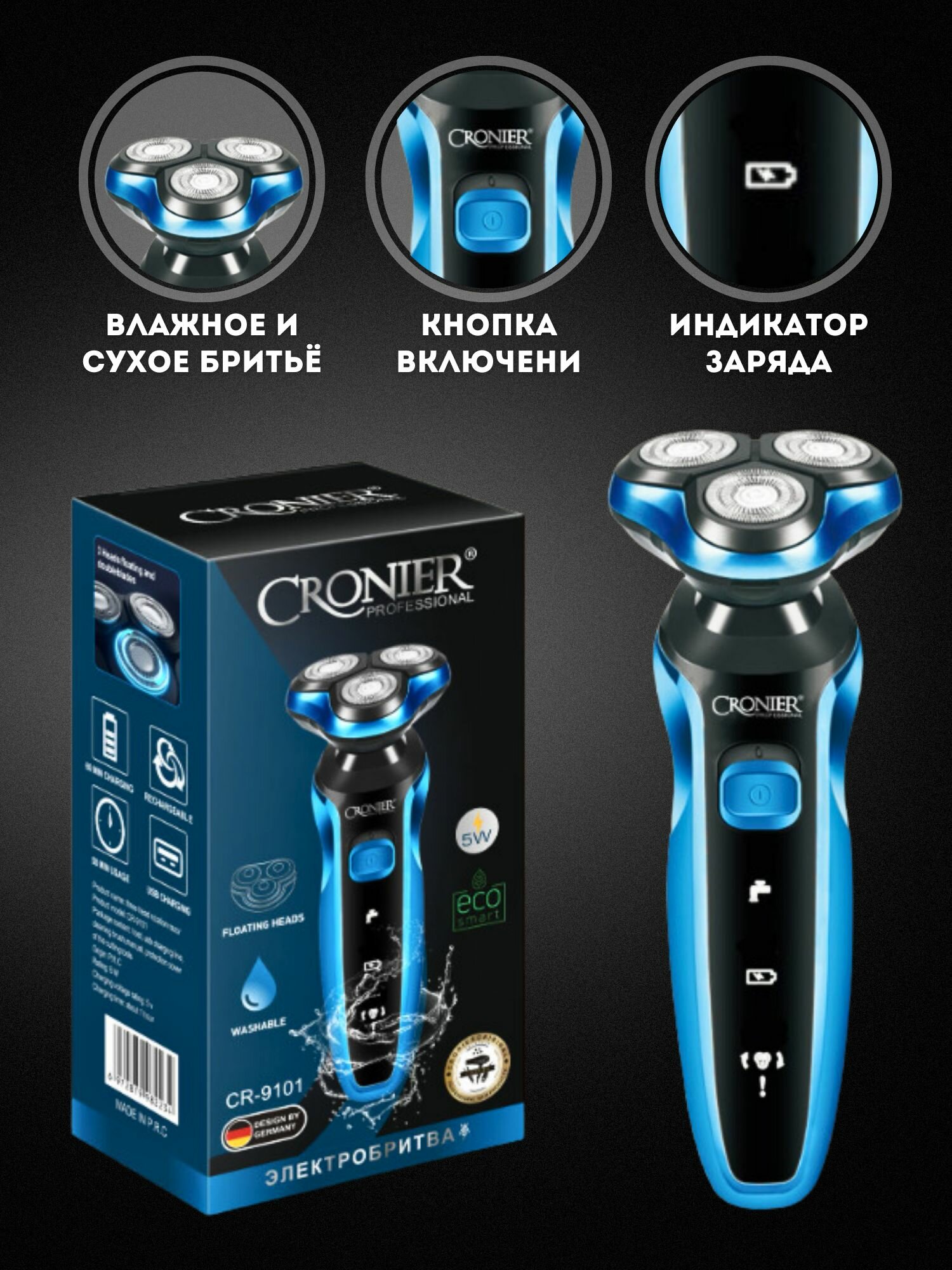 Электробритва для влажного и сухого бритья Cronier CR-9101 с плавающими головками