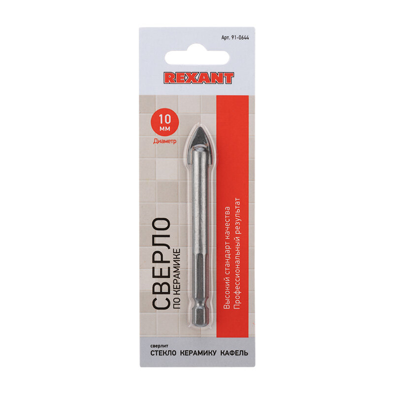 Сверло по стеклу и керамике 10мм (шестигранный хвостовик) REXANT 91-0644