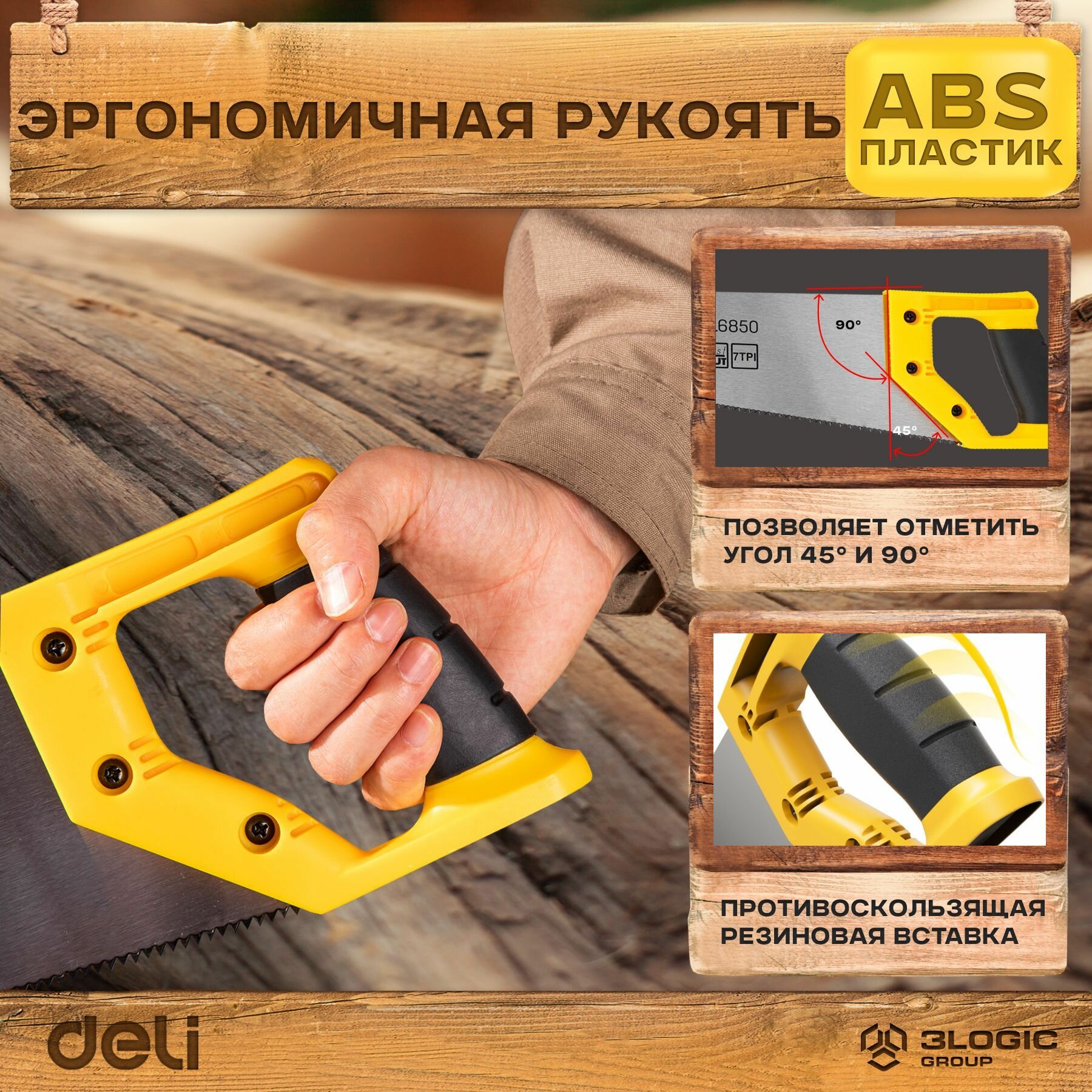 Ножовка (пила) по дереву DELI DL6850 500мм (7 TPI, 2D заточка, закаленный зуб, быстрый рез, пластиковая рукоять)