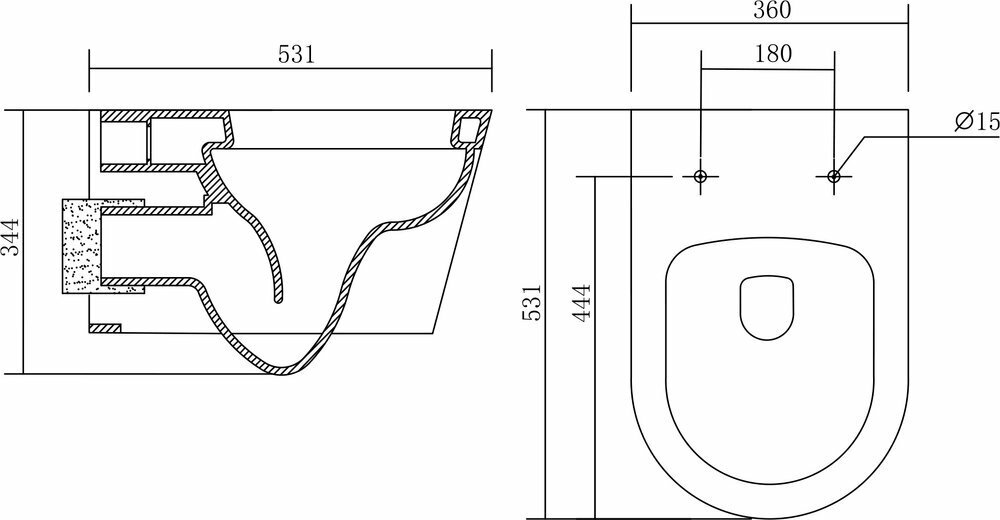 Aquatek AQ1363W-00 Оберон Унитаз подвесной 53х36 см, безободковый, белый