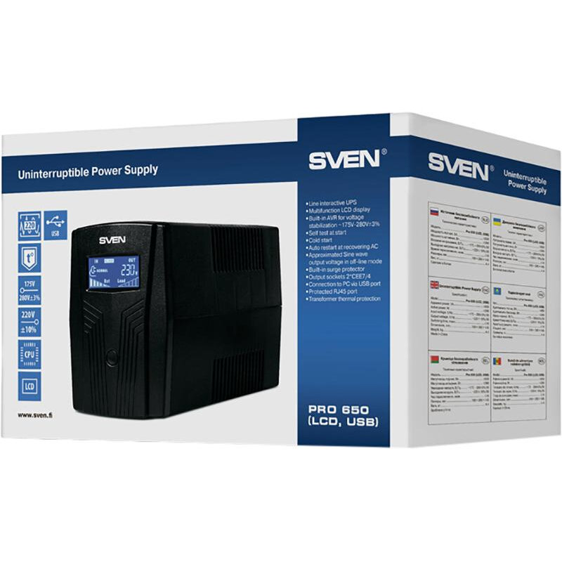 Источник бесперебойного питания Sven PRO 650, 2 розетки, 650ВA, 390Вт, LCD дисплей, черный