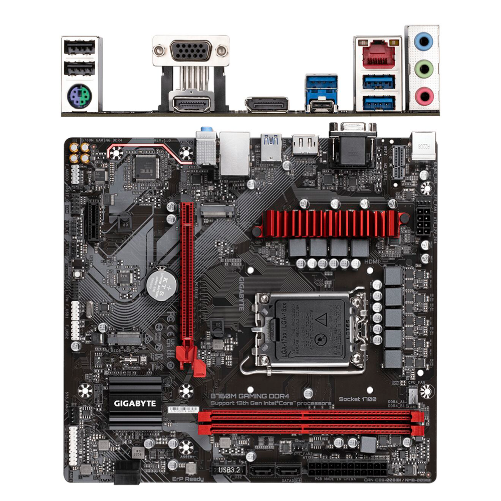 GIGABYTE B760M GAMING DDR4, LGA1700, B760, 4*DDR4, D-sub+DP+HDMI, 4 SATA 6 Гб/с, M2, Audio, Gb LAN, USB 3.2, USB 2.0, Type-C, COM*1 port, mATX