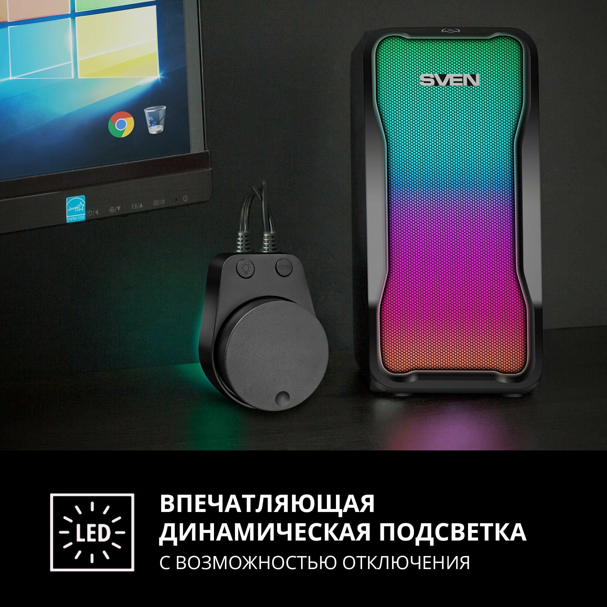 Акустика реально стильная, если в компьютере, мышке и клавиатуре много подсветки, то эта акустика вам понравится точно. Звук яркий, мощный с отличной детализацией, при этом сохраняет баланс между басами и высокими частотами. Однозначно советую. |