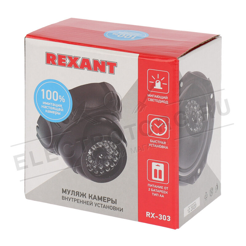 Муляж видеокамеры внутренней установки RX-303 REXANT с имитацией работы и наклейкой в комплекте