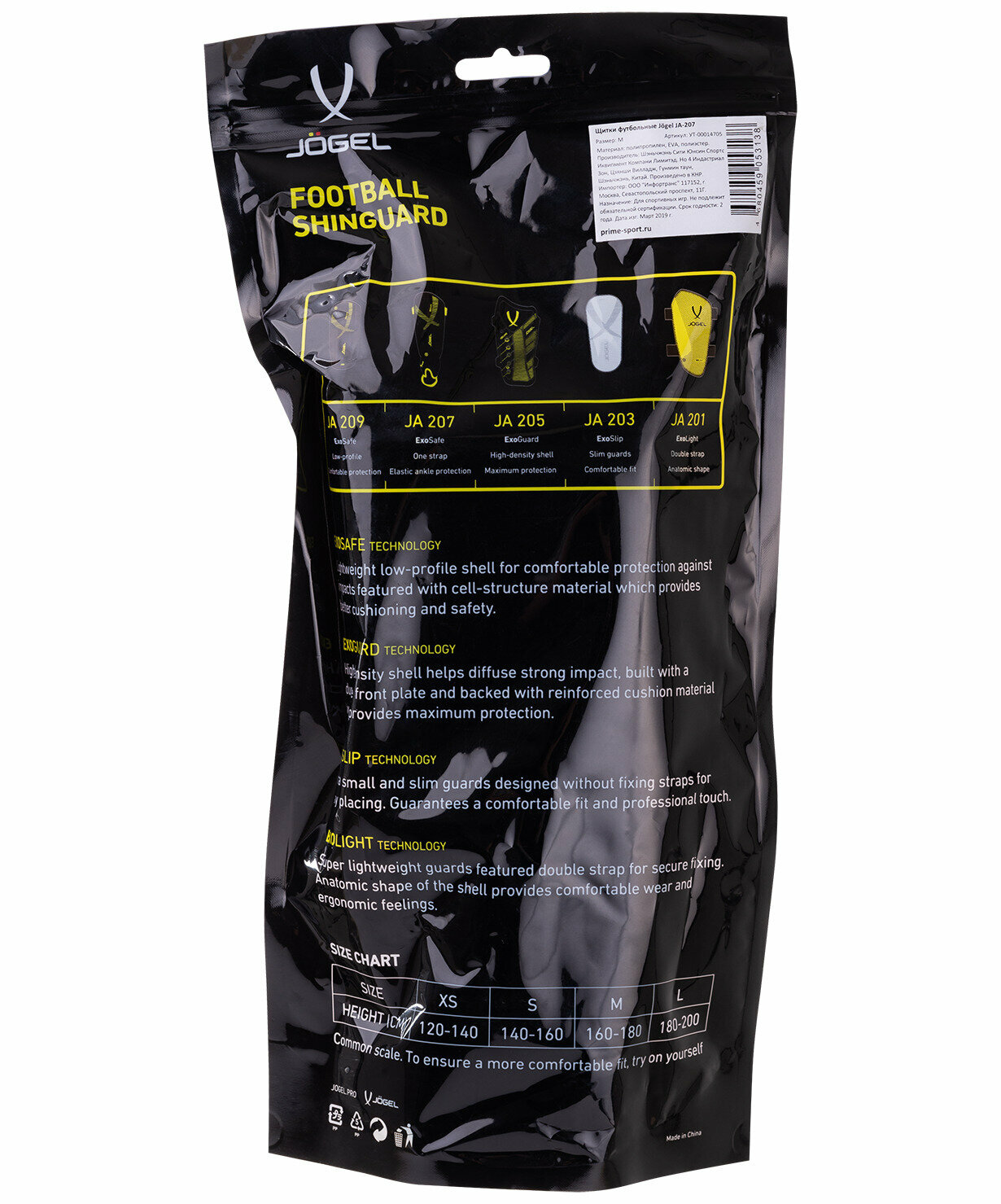 8264-13350 Щитки футбольные JA-207, черный, Jogel, УТ-00014705 - S