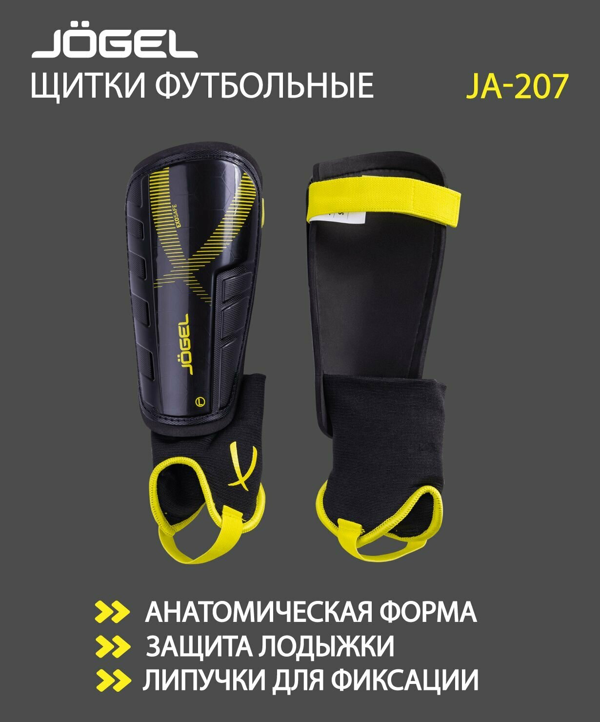 Щитки футбольные Jogel JA-207 с ремешком, размер L, цвет черно-желтый
