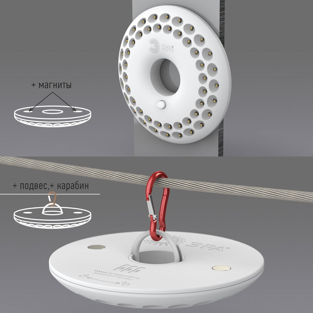 Фонарь кемпинговый светодиодный ЭРА K48 НЛО-48 туристический подвесной на батарейках с кронштейном и магнитом