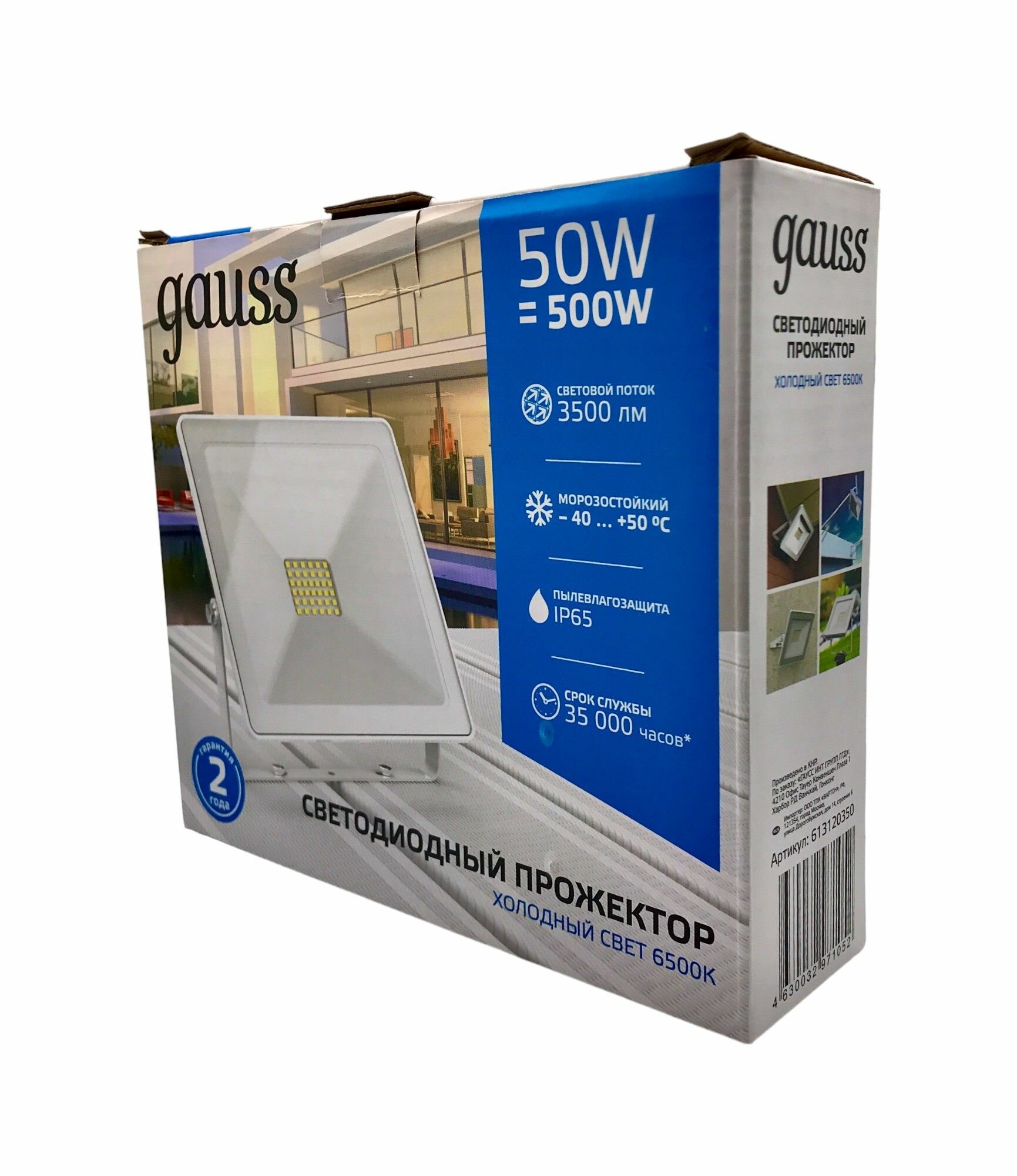 Прожектор LED GAUSS 50W белый 613120350