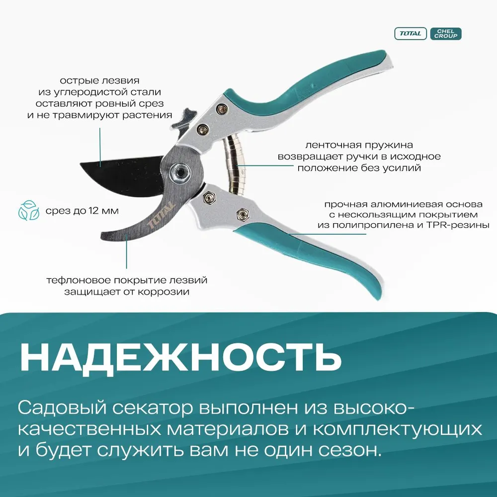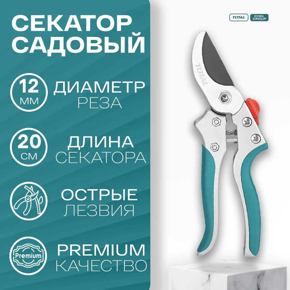 Секатор TOTAL с алюминиевым корпусом, ручки с нескользящим покрытием