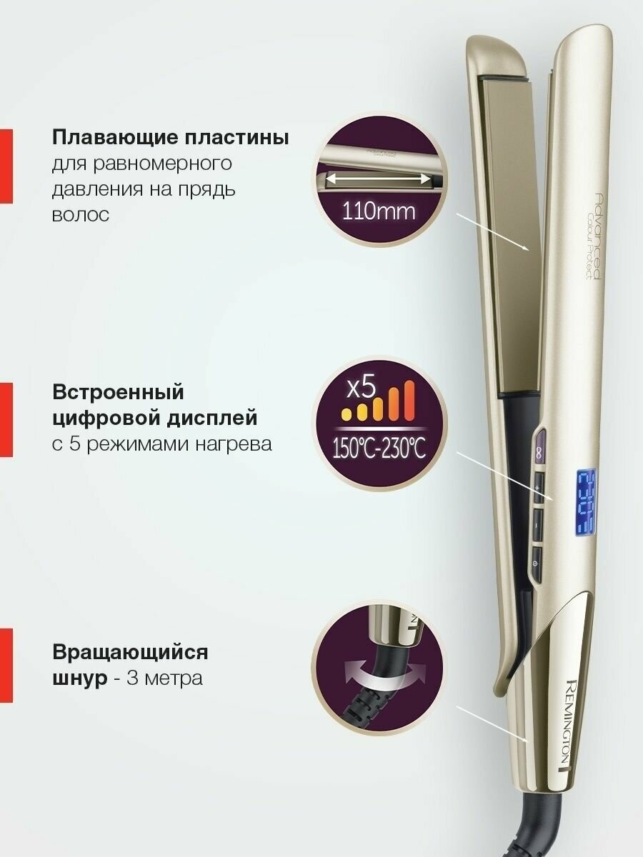 Выпрямитель для волос Remington Advanced Colour Protect S8605, 5 режимов нагрева, интеллектуальный сенсор, быстрый нагрев, плавающие пластины, автоотключение