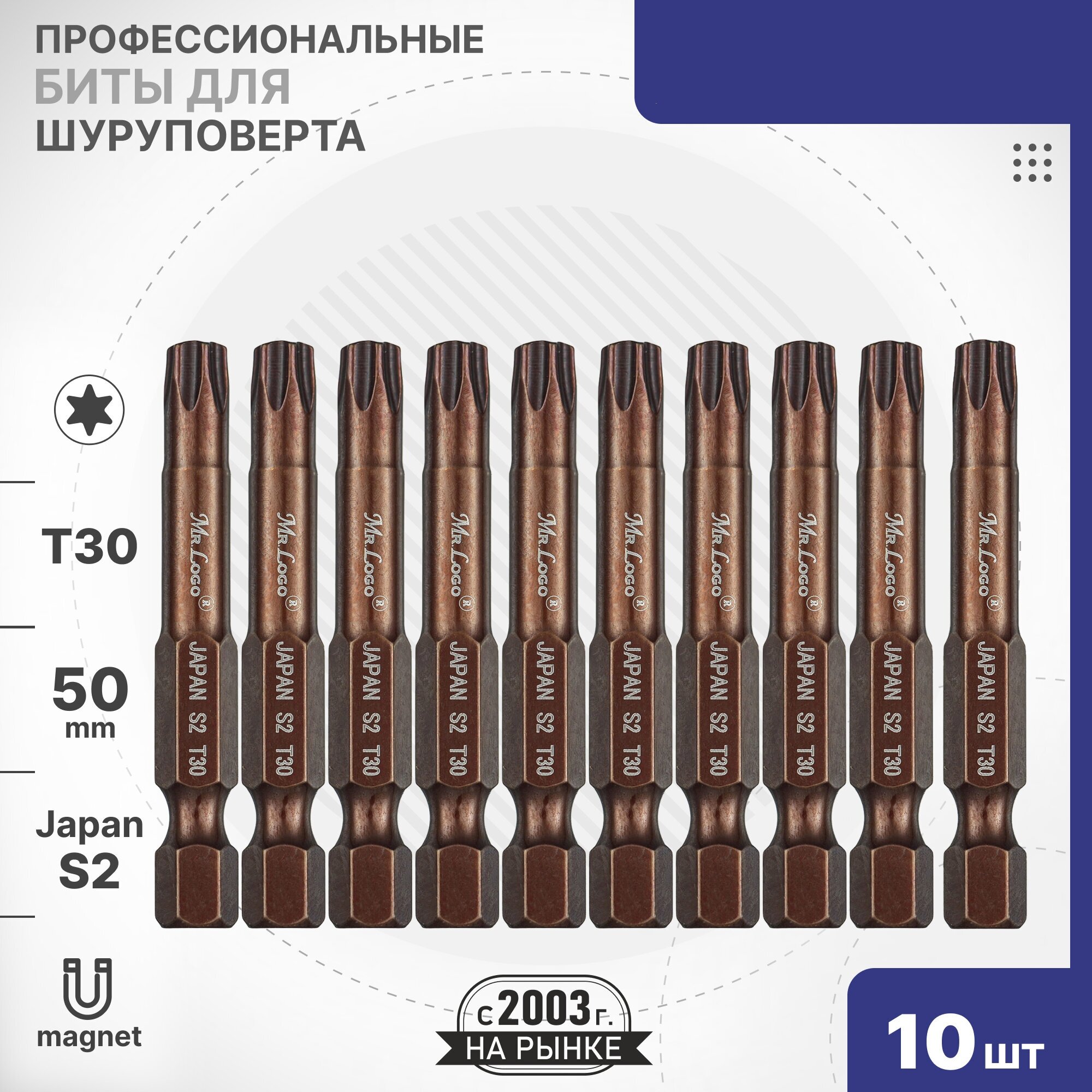 Бита T30 x 50мм Mr.Logo намагниченная 10 шт. S2.