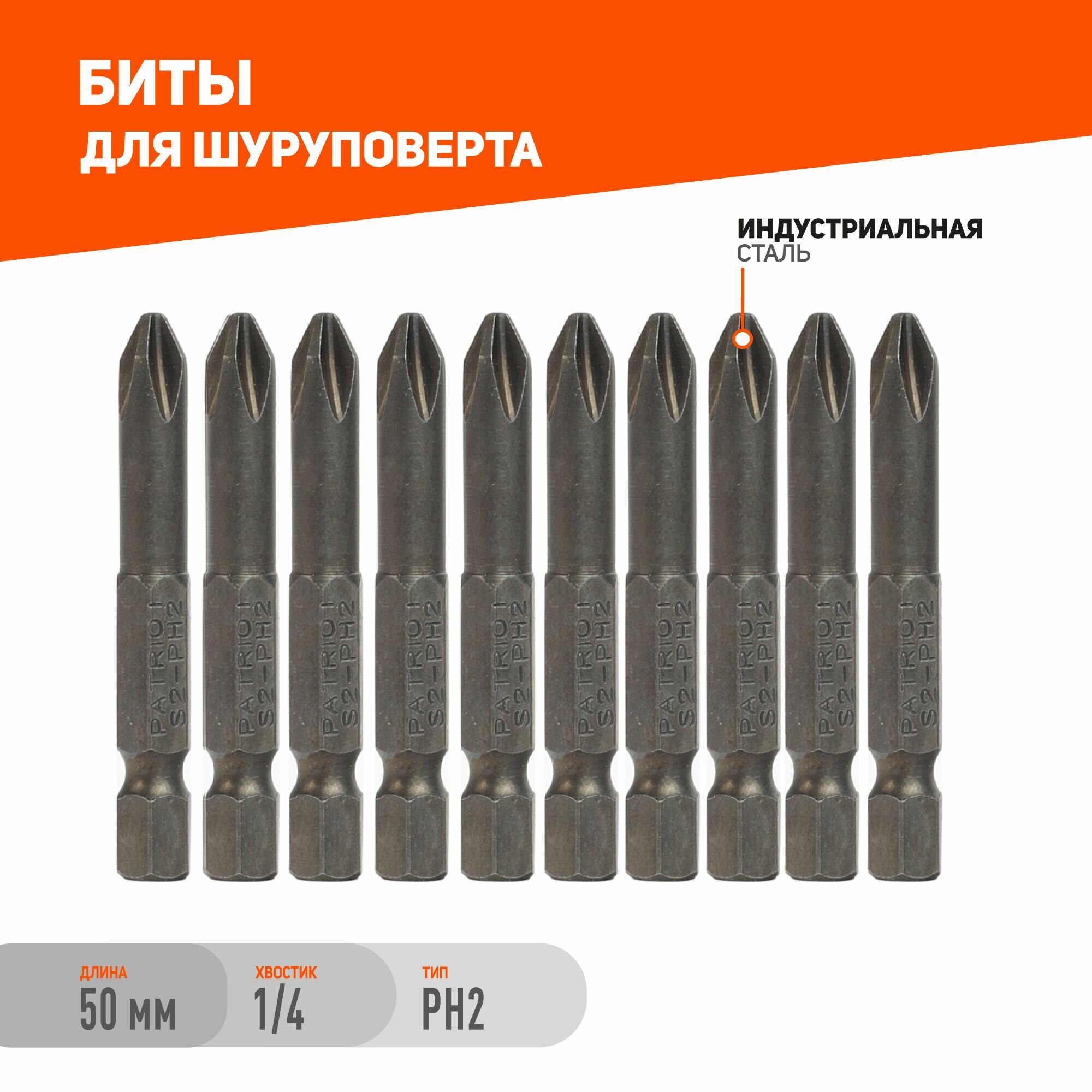Биты Patriot PH2, 50 мм, 10 шт
