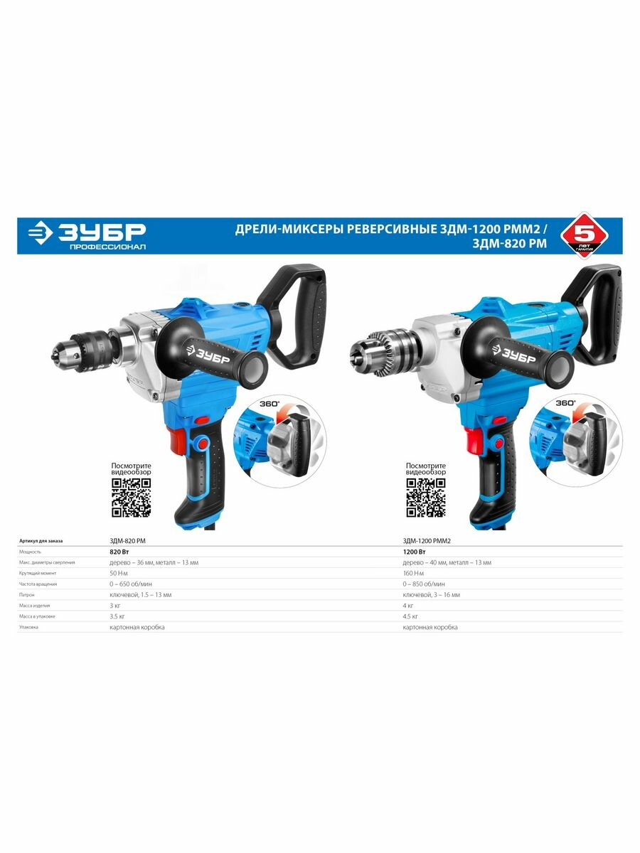 ЗУБР 1200 Вт, 0-850 об/мин, дрель-миксер реверсивная ЗДМ-1200 РММ2 Профессионал