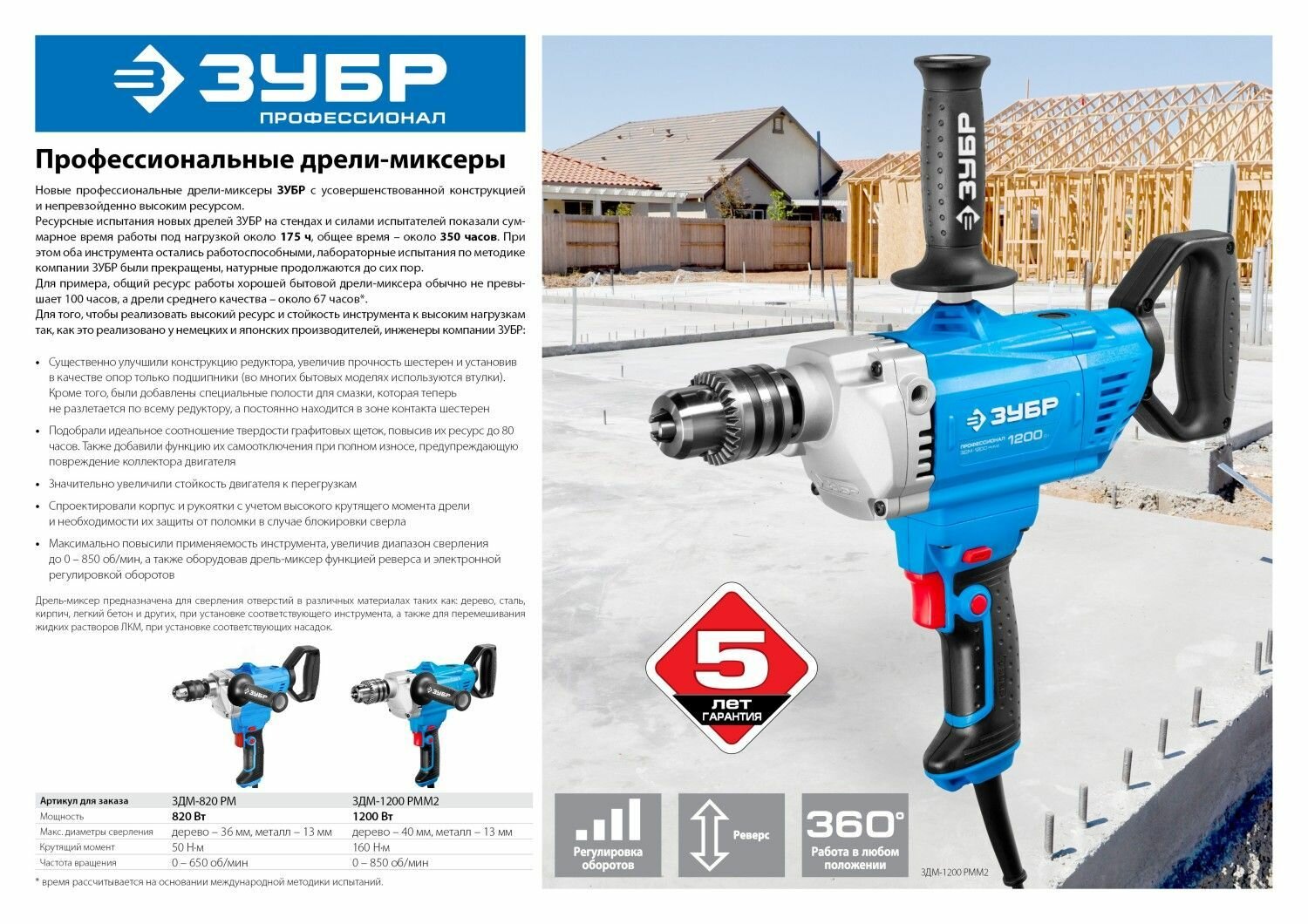 Дрель-миксер Зубр ЗДМ-1200 РММ2 реверсивная