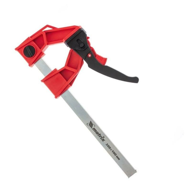 Струбцина MATRIX 20726, усиленная, пластиковый корпус рычажно-храповой механизм, 200 х 100 х 351 мм, штанга 5 х 22 мм