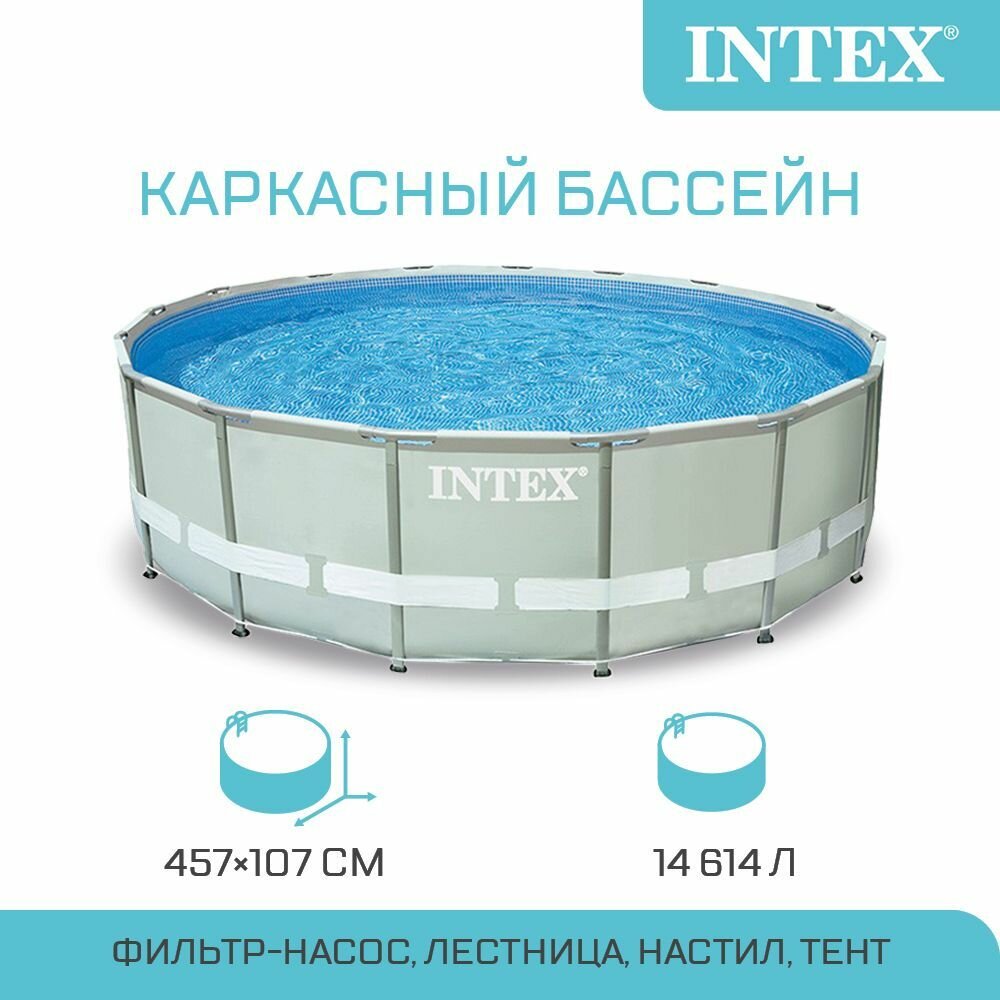 Бассейн Intex Prism Frame, 457х107см, фильтр-насос 3785л/ч, лестница, подстилка, тент