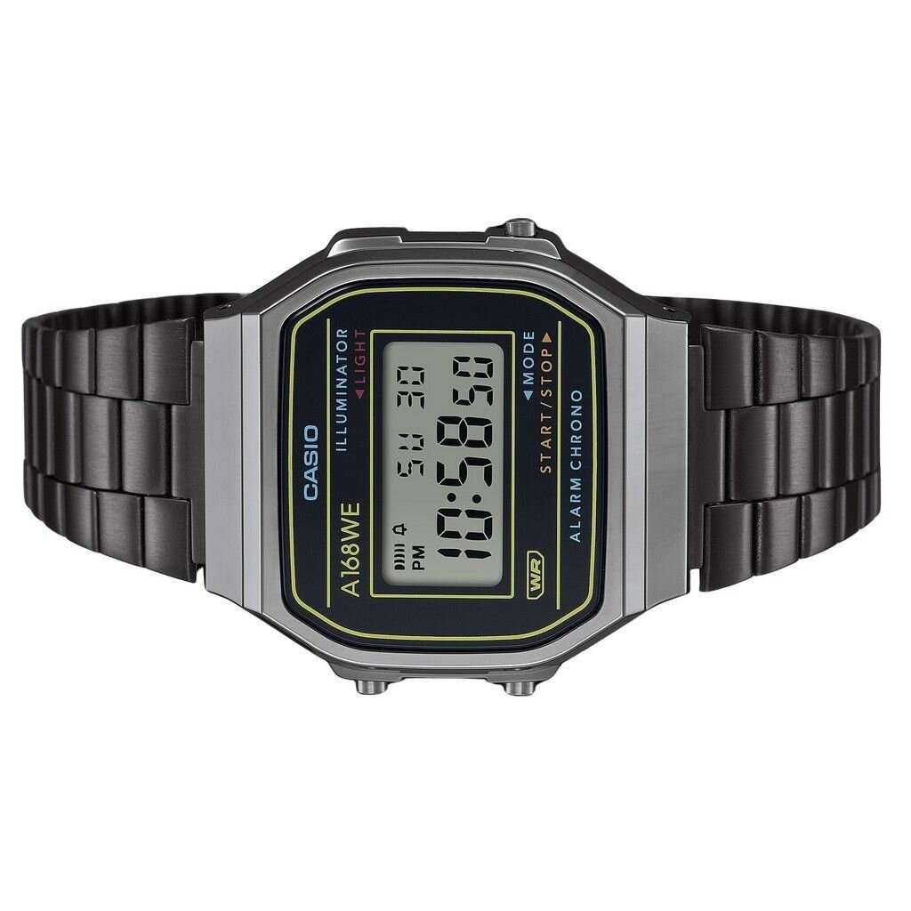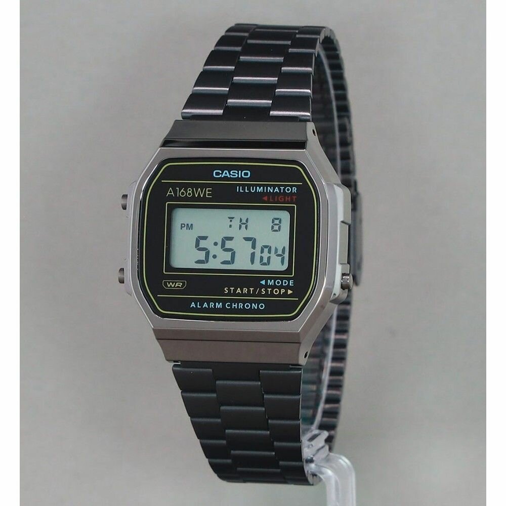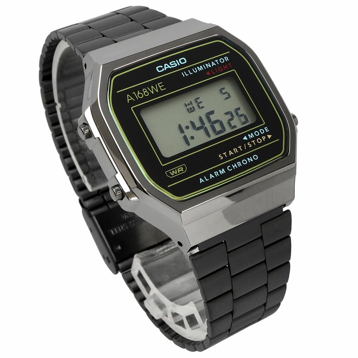 A168WEGG-1A Casio наручные часы кварцевые WR30 (3 атм) мужские, женские черный секундомер будильник отображение числа, отображение дня недели, отображение месяца подсветка дисплея акриловое стекло